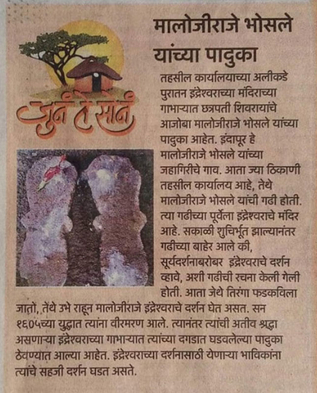 As per the information Chhatrapati Shivaji Maharaj's grandfather Virshri Malojiraje Bhosale was a great devotee of Indreshwar. He had made a special financial provision at Indreshwar temple (Indapur) to lit for oil lamp at that time. Later in the british rule in 1885, the British government made provision of three rupees to lit the oil lamp continuously in this temple as cited archeology department.